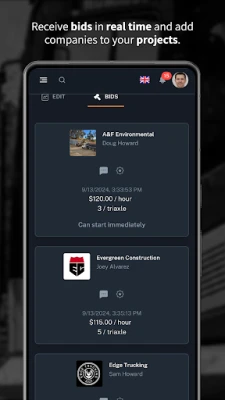 -Get real-time notifications - Never miss an opportunity with instant alerts when new projects are added near you, you receive a message or a bid, or there is a project update