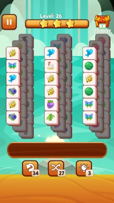 Select one tile, then another, Simply match three tiles to reveal more tiles underneath,to have them to create of 3 in the slot below to clear. Beware, If you select too many tiles without at least matching three you will have to begin your journey over again.Just matching until you clear everything.