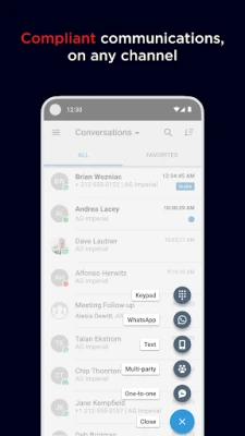 Global Relay Android Text works with voice call recording for Corporate-issued devices, so all conversations and calls are archived as per financial industry regulations.