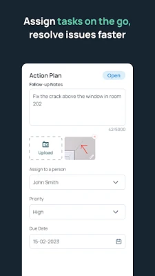 Found an issue? Immediately assign follow-up tasks to the relevant teams (the number of assignees is unlimited). Track task completion on a central dashboard and escalate as required.