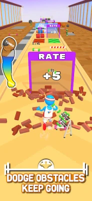 Jump into Gym OClock Run, where fitness meets action! Start as a muscleless beginner and power up by throwing dumbbells at weight plates to build muscle. Watch out for junk food-throwing enemies and dodge obstacles that stand in your way.