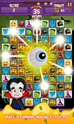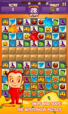 Objectives differ in over many levels. Match 3 or more magic icons of the same type, create a magnificent magical blast! It starts out simple, but becomes more and more interesting and challenging. This witch puzzle match-3 game brews magic potions & charms in an adventure of sorcery and witchcraft with amazing graphics that come with a Halloween twist. Connect charming items to match 3 or more and create waves of spine-tingling excitement.