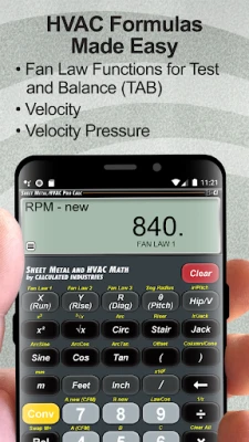 This professional HVAC & Sheet Metal Calculator delivers advanced construction math for tackling complex calculations. This versatile tool brings dimensional math, geometry, and trigonometry to your device with trade-specific functions.