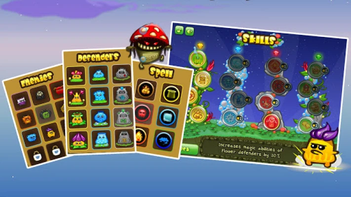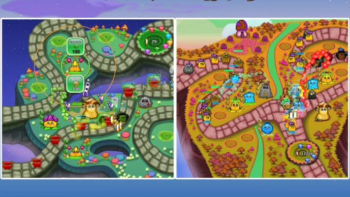 Explore the most wonderful world and defend your collection of diamonds. Learn all the ways to defend your jewels. Build your strategy and win more golden coins. Spend coins to upgrade your flower-cannons, aqua-friends, rock-bombers and, of course, work on your economical future.