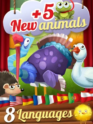 2 Mini-games designed for toddlers: memory cards and puzzle. Autoplay mode is also available (can be turned off in settings). Names of animals in 8 languages (English, Russian, French, German, Italian, Spanish, Portuguese, Polish)