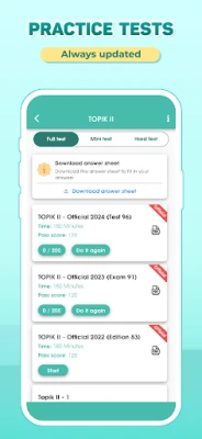 3. Challenge yourself with TOPIK I and TOPIK II mock tests.
