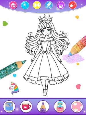 Draw, color & paint with out cool and cute princess coloring book. "Princess Coloring & Drawing Game" comes with 60+ amazing pictures of princesses, queens, unicorns & horses, castles, and a lot of FREE educational content: girls dress up, cake decoration, nail salon, decorate your house, washing dishes and daily life activities!