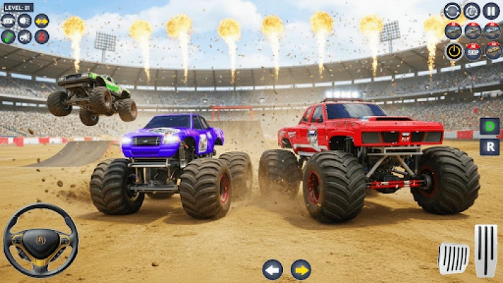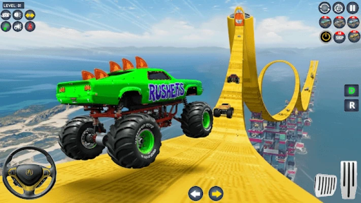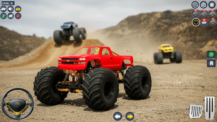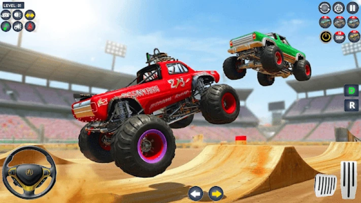 Monster truck driving is an action-packed game, where specially designed, oversized trucks are driven on thrilling tracks of power and speed. Get ready for the ultimate offroad thrill in this monster truck game. Take control of a massive, powerful truck and conquer challenging terrains, from mud pits to rocky hills and steep ramps. Each level brings new challenges to test your monster truck driving skills, from snowy, icy tracks to hot, sandy deserts. The monster truck driving has two entertaining modes of truck driving and demolition. In the monster truck first mode, play the five tricky levels of a monster truck, including sunny, snowy, and desert tracks.