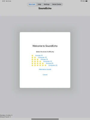 SoundEcho is a memory game with sounds, that is easy to operate and is fully accessible by means of VoiceOver. Not only blind and poor sighted players, but also sighted players will really have fun playing SoundEcho. The purpose of the game is easy. Spread across the screen you find buttons with a letter, digit or smiley on them. When you click on a button, you hear a sound. If you press two buttons successively and you get the same sound, these buttons will disappear and you found the particular sound. Try to find all sounds with as few clicks as possible. You can choose between animal sounds and computer sounds and look for 10, 15 or 20 sounds. SoundEcho integrates Game Center, so you can compare scores, track your achievements and can play against each other with 2 to 4 players real-time. Don't hesitate to try SoundEcho for free.