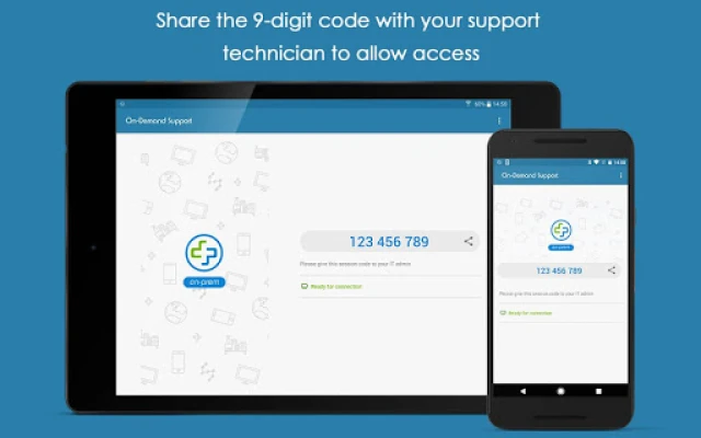 Get remote support of your mobile device from any computer (Windows, Mac, Linux, Chromebook) with Splashtop On-Prem. User can real-time screen share to remote technician. Technician will be able to share clicking pointer remotely to help guide the user. Session connection is encrypted using 256-bit AES / TLS .