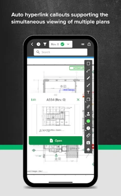 Access, markup, and share digital plans on the jobsite with our fast, responsive mobile app. Construction crews can work offline, manage issues with photo uploads on plans, and reduce overall plan review time in the field by 50%.