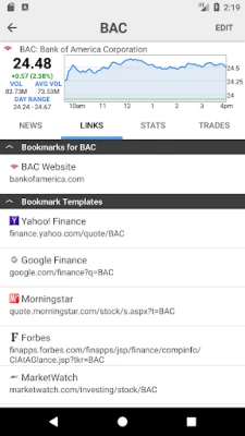 ✔ Time Saving Links: Organizes web links related to your stocks for quick investment research. Never have to type in a URL again. Setup a link template once for your whole portfolio.