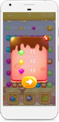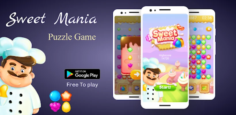 Sweet Mania Candy is a fun puzzle game full of delicious desserts. Create rows or columns with 3 or more desserts of the same color to make them level up to their full size and start burning chain reactions. Come on, let's take on this joyful saga alone or play with friends to see who can get the highest score!