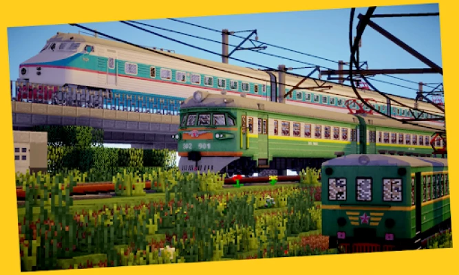 This mod or addon will enhance the realistic Mincraft game by including a sizable number of pixel-based MC locomotive mods, gorgeous and incredibly fast MC add-on trains, a wide variety of MC skins, and extra rails for your amazing buildings in Survival Craft Mine.