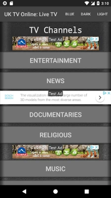 - 3 themes available in the app from which you can choose - The application space is very small - Easy to use graphical interface - Well defined channel categories - Scalability with phones and tablets of any size