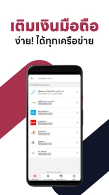 สะดวกสบายกับการเติมเงินมือถือ และซื้อโปรเสริมทุกเครือข่าย , เติมเงินเกมออนไลน์ หรือซื้อบัตรเติมเงินผ่าน Android ของคุณทุกที่ทุกเวลา
