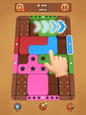 Your goal is straightforward: slide the wooden blocks horizontally or vertically to free the main block and guide it out of the grid. As you progress, the puzzles become more complex, requiring thoughtful planning, multiple steps, and clever strategies to solve.