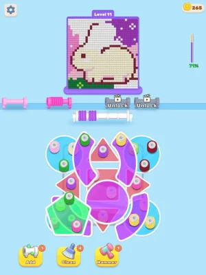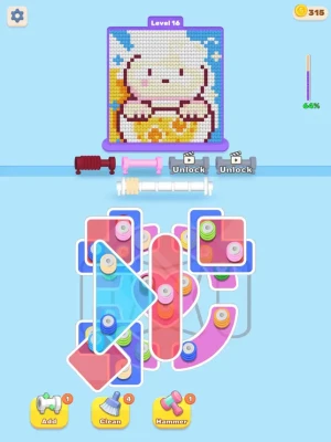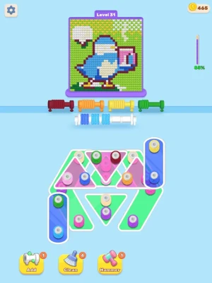 Dive into a colorful world filled with soft textures and creative challenges. Your goal is to pick the right yarn spools and sort them into matching color bars. As each bar fills up, a beautiful pixel art image begins to take shape. With each completed artwork, you’ll experience the simple joy of bringing order and color to chaos.Whether you're a fan of relaxing ASMR puzzles or clever sorting challenges, Wool Sort: Color Puzzle offers a peaceful escape that exercises your mind without pressure.