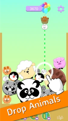 Геймплей: Животные и звери падают из корзины сверху вниз. Игроки проводят линию, соединяя одинаковых животных. При успешном соединении образуются новые виды, принося игрокам очки. Чем больше животных соединено, тем больше очков заработано. Ваша цель - достичь Жирафа и набрать максимум очков.